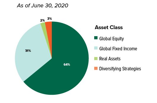 The endowment investment portfolio is professionally managed, with a long-term objective to achieve a total return averaging at least the sum of the spending rate, administrative fee, and inflation. The portfolio is broadly diversified into traditional and alternative investments, with all positions falling into one of four broad asset caegories: global equities, global fixed income, real assets and diversifying strategies.